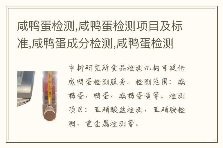 鴨蛋源咸蛋產品:以鴨蛋為原料制成的咸蛋,檢測特定指標如鴨蛋特有的營養成分和污染風險。