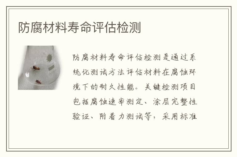 關鍵詞:防腐材料壽命評估測試儀器,防腐材料壽命評估測試周期,防腐材料壽命評估項目報價