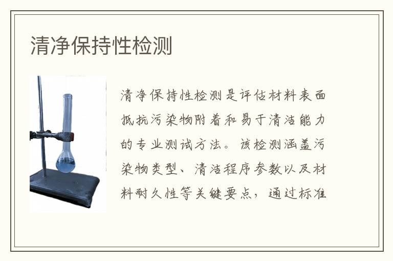 關(guān)鍵詞:清凈保持性測(cè)試機(jī)構(gòu),清凈保持性測(cè)試范圍,清凈保持性測(cè)試案例